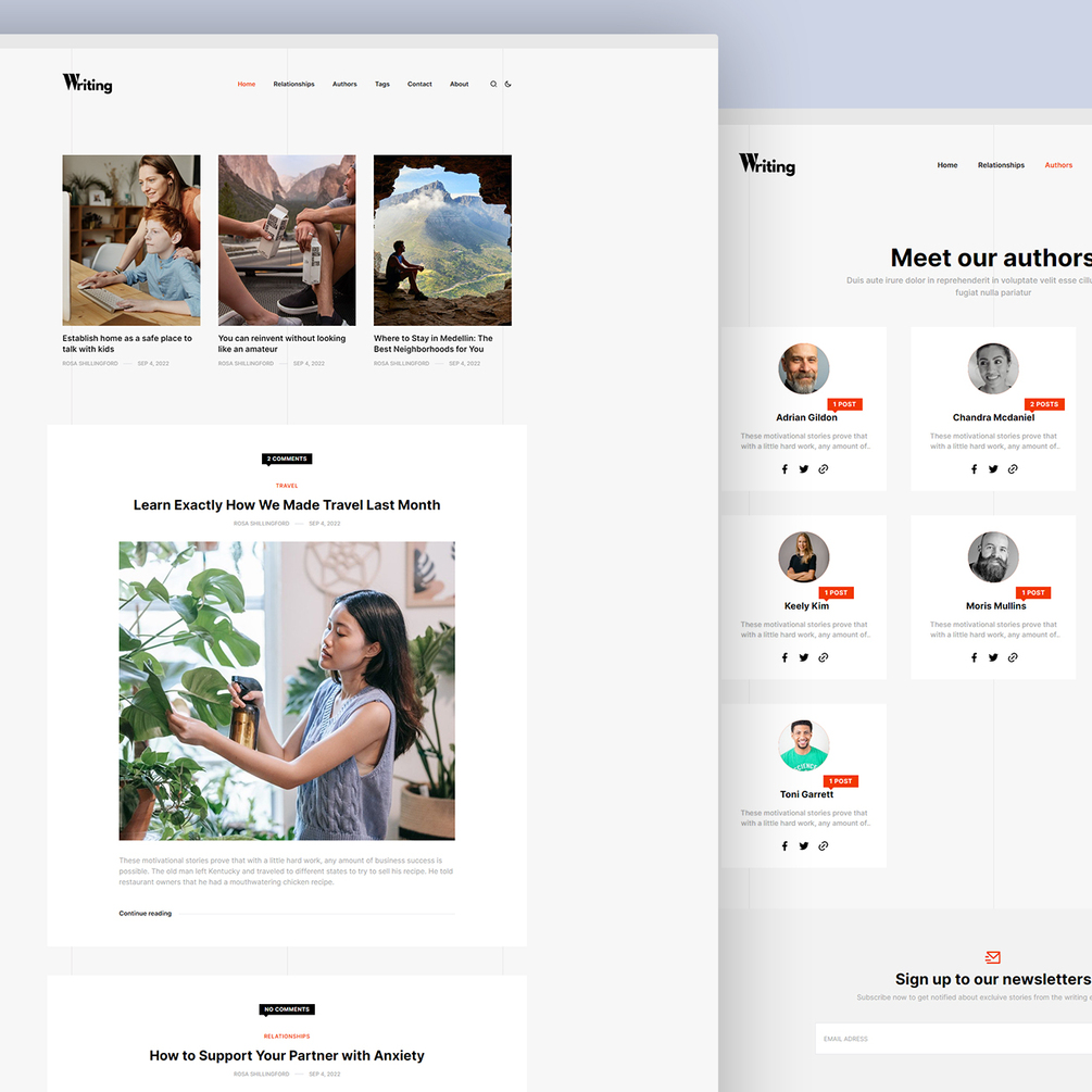 Writing - Personal Blog & Content Writing is a Ghost theme with modern, creative, and clean design. You can use this theme for multipurpose (fashion, magazine, personal, blog etc.) We take care of each detail to create awesome minimal Ghost blog theme for you to share articles, photos, galleries, videos and products with the world.